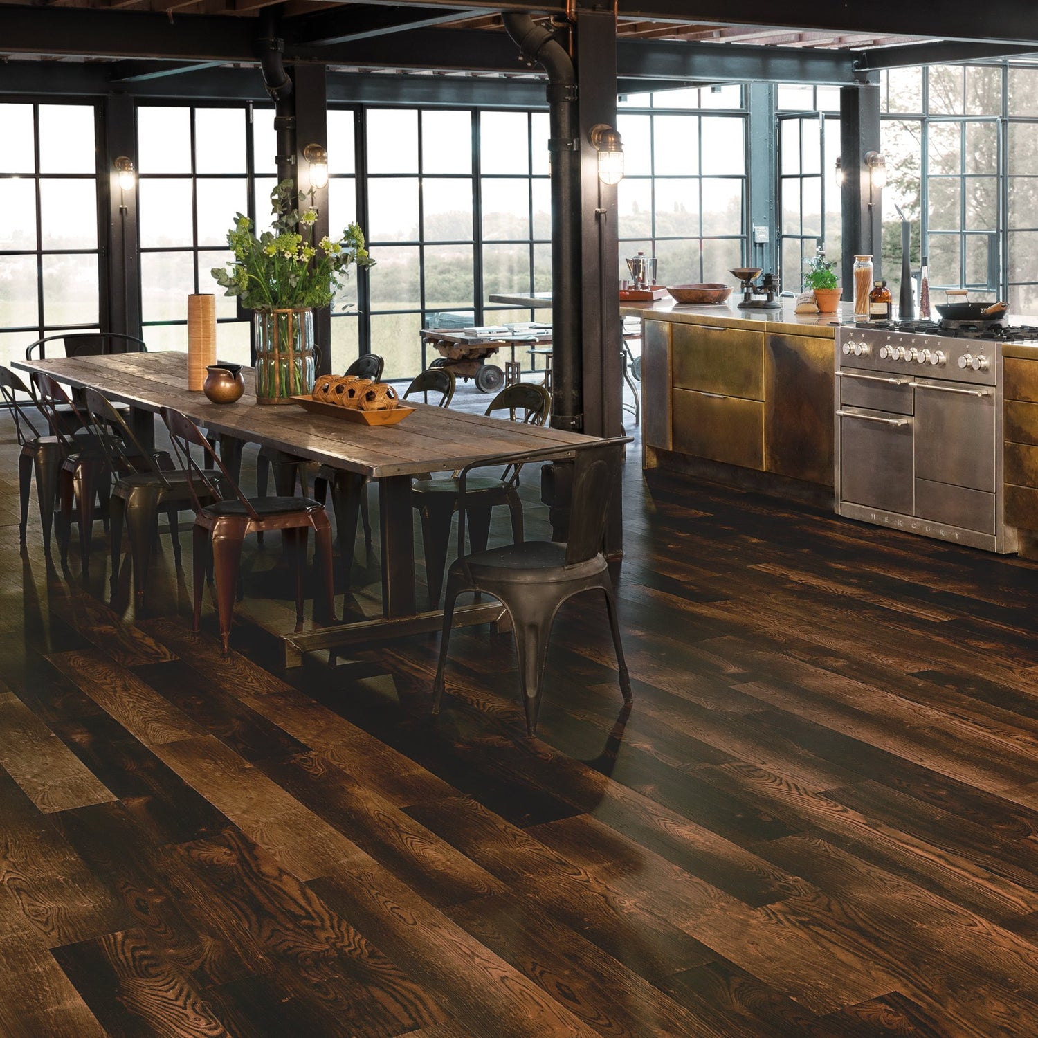 Die Designbodenbeläge der floors@work Kollektion mit 0,55 mm Nutzschicht sind für hohe Beanspruchung im Objektbereich und höchste Beanspruchung im Wohnbereich prädestiniert. 119 Holz- und Steindekore bieten eine nahezu unbegrenzte Gestaltungsauswahl für stark frequentierte Flächen.